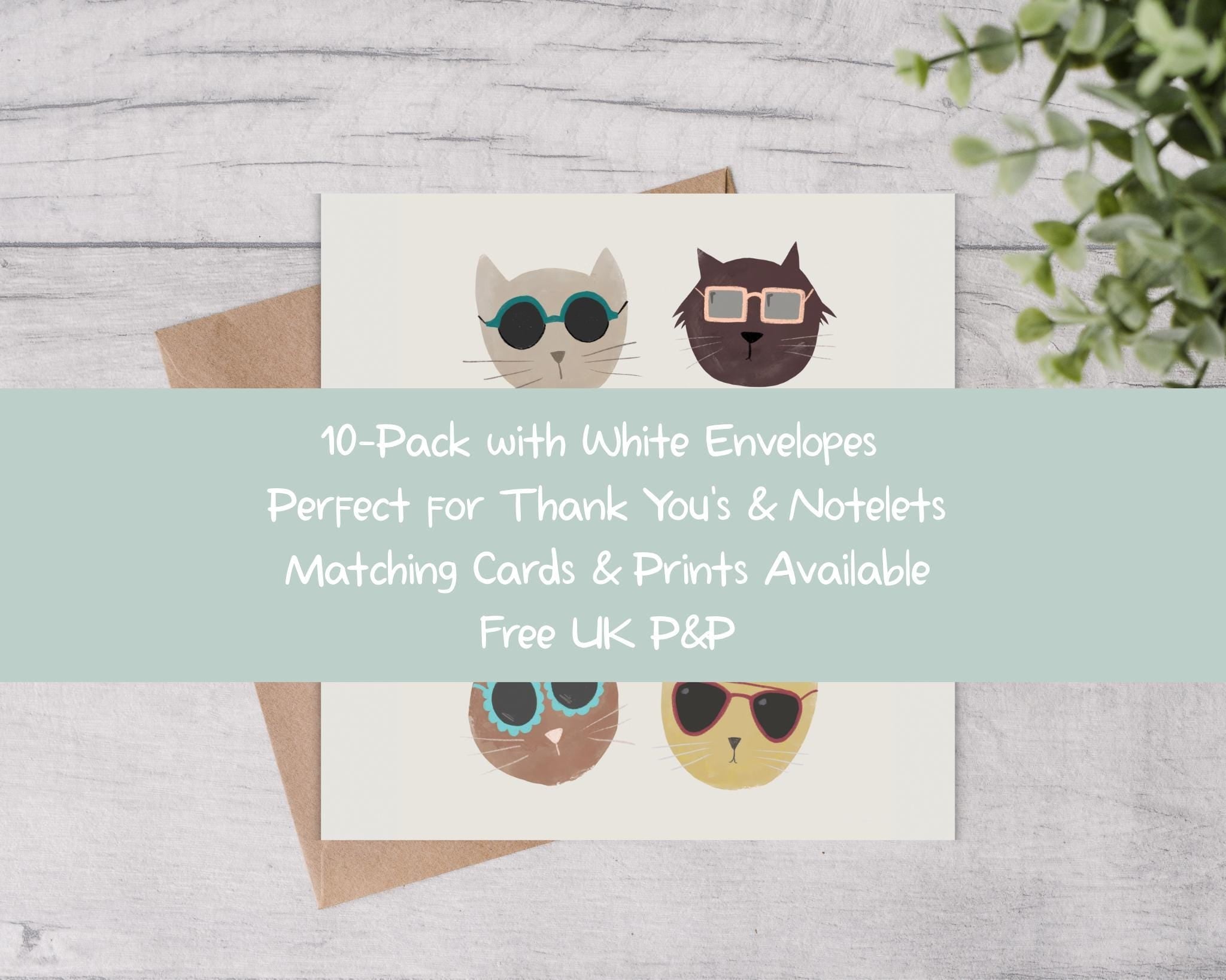 Send a smile with this quirky and cheerful set of note cards, featuring six very stylish cats in sunglasses.