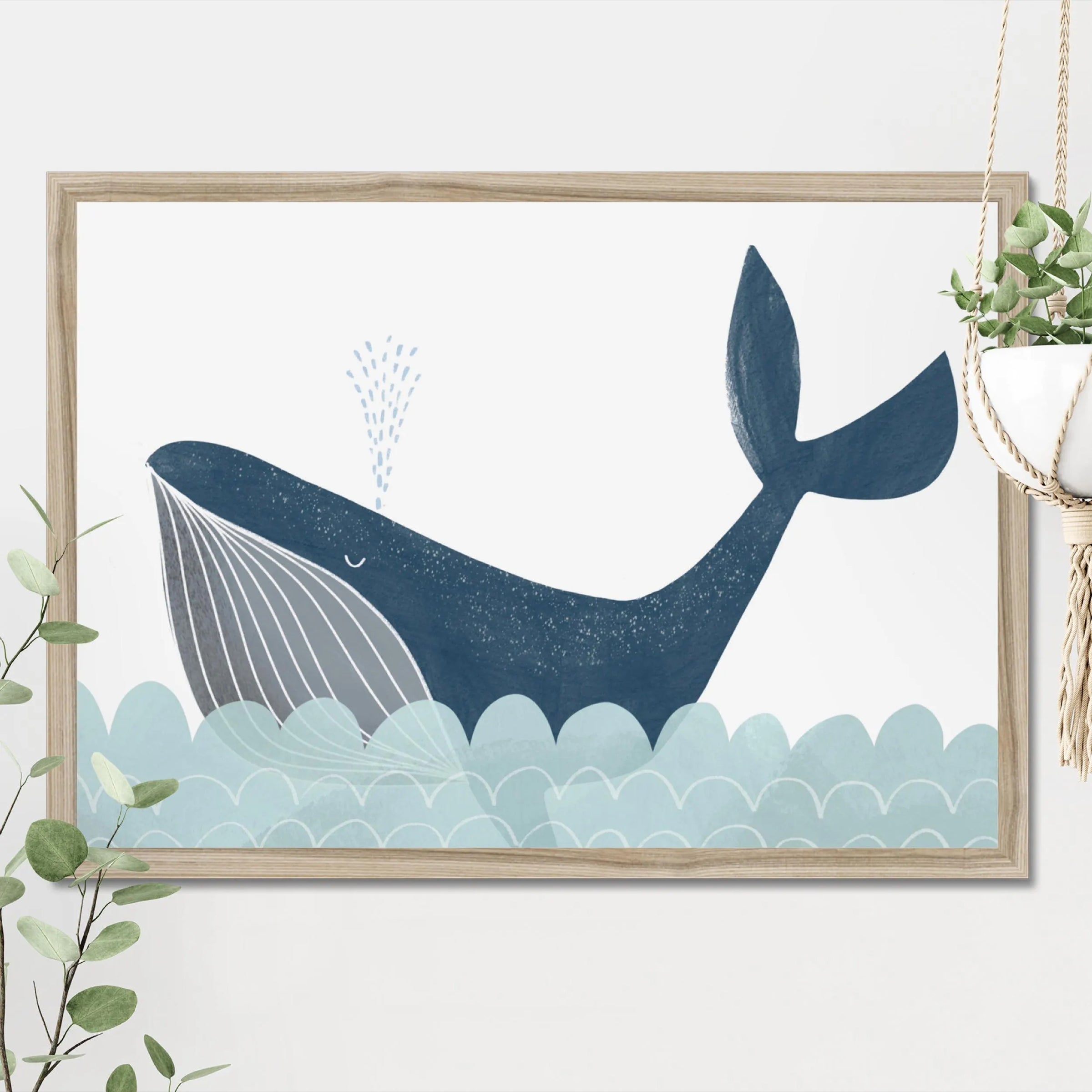 Dive into calm with this sweet blue whale print.